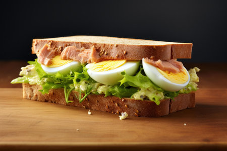 Filling Sandwich hard boiled egg tuna. Meal wooden. Generate Ai