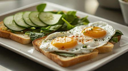 Over Easy Eggs Avocado Spinach Toast Greek Yogurt Cucumber Breakfast