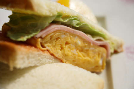 Home made sandwich, homemade food, a sandwich with fried egg and cabbage