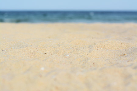 close up sand with blurred sea sky background summer day copy space or for product summer background concept