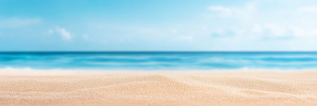Minimalist summer beach background with soft sand, a calm ocean, and plenty of space for mockups or text