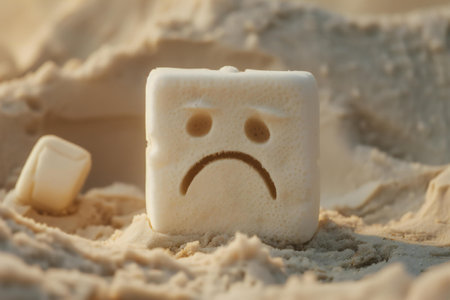 Sad face emoticon on ice cream. Emoticon in ice cream