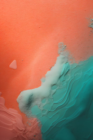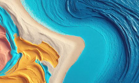 Abstract view of textured, multi-colored paint strokes resembling a beach and ocean