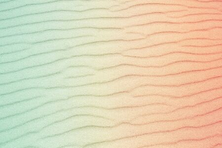 Sand stripes made by water waves texture background. Toned to torquoise blue-red gradient. Summer vacation, holiday at sea concept.