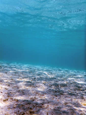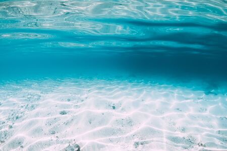 Turquoise ocean water with sandy bottom underwater. Tropical sea