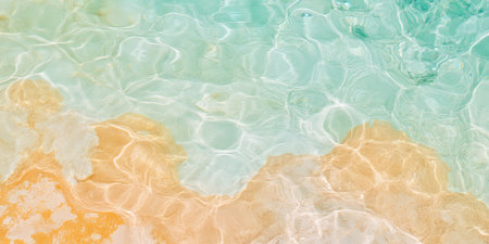 Art beach scene with gentle waves, sandy shoreline. Bright colors create peaceful atmosphere. Generated AI. Sunny beach holidays travel concept. Copy space. Sunny tropic paradise. Plage background.