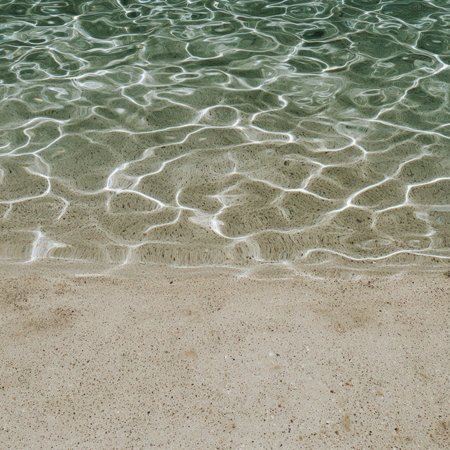 Sunlight streams through shallow water, creating a mesmerizing pattern on the sandy bottom.