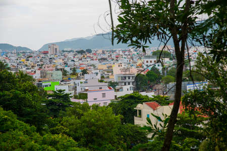 Overlooking the city of Nha Trang: trees,mountains, houses.