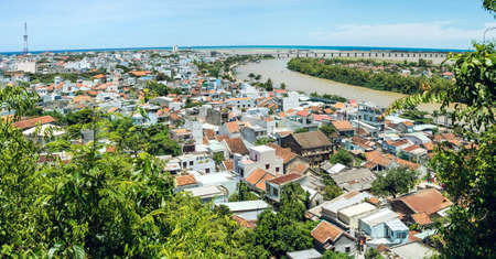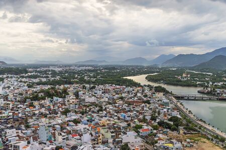 Scenic view on Cai river in Vietnam. Photo taken from Cù Lao Mountain with Po Nagar Temple.