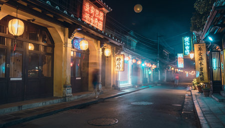 photo of background chinatown street at night, generative AI