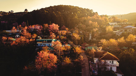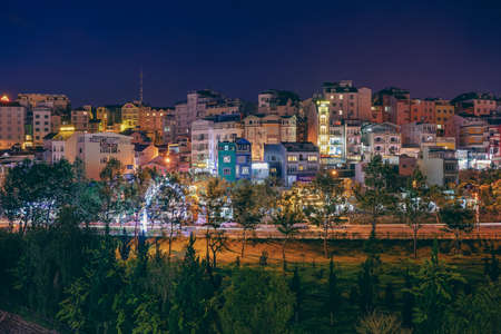 View of Dalat City, Vietnam with blue sky and clouds on a sunny day