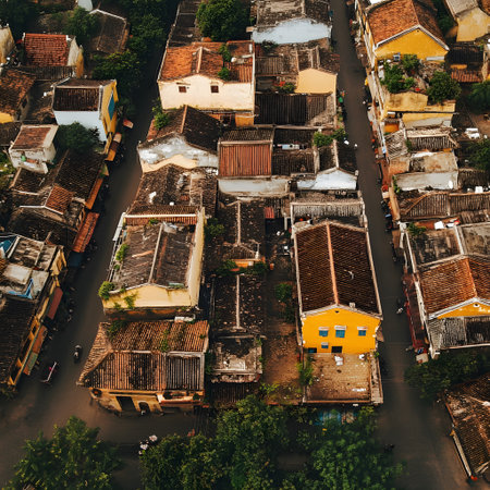 HOI AN, QUANG NAM, VIETNAM, April 26th, 2018: Nice view with a lot of old houses with roof tiles on the top of Hoi An town. Hoi An is an ancient town in Vietnam's
