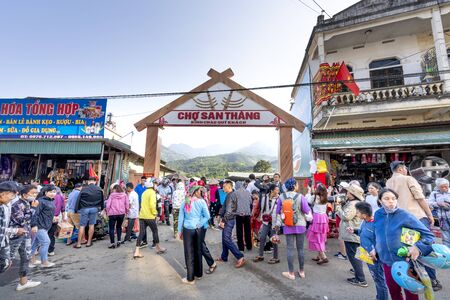 San Thang Market, Lai Chau Province, Vietnam - September 22, 2019: The ethnic minority women at San Thang Market, Lai Chau Province, Vietnam
