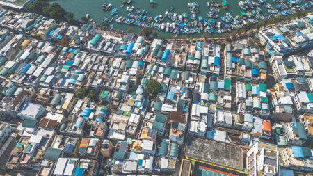 beautiful aerial view of the Tai O, old fishing village in Lantau Island, Hong Kong, Top view bird view