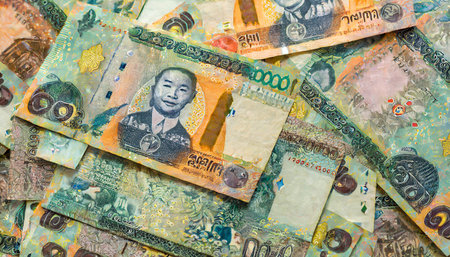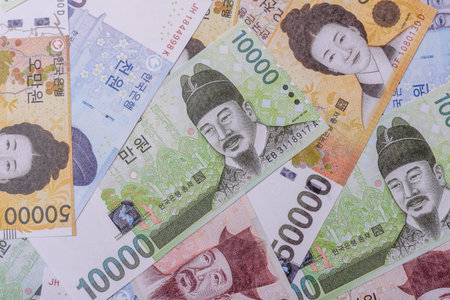 Korean paper money, won, and cash banknotes for financial and business transactions. Korean money as a background for your design