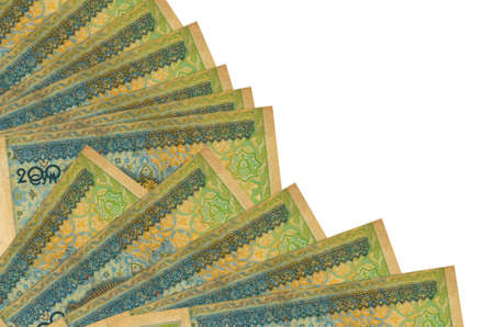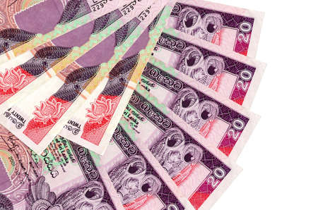 20 Sri Lankan rupees bills lies isolated on white background with copy space stacked in fan shape close up. Financial transactions concept