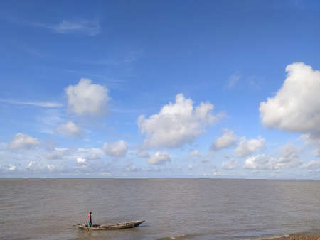 A scene of fishing in the chest of the sea, a scene of a man fishing under the open sky, this is a scene of noon, if you like the photo you can take it.