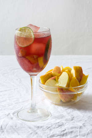 Refreshing sangria in a glass on a light background.