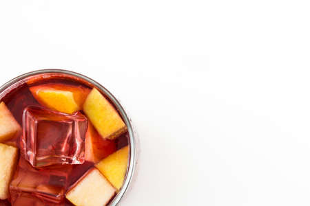 Sangria drink in glass isolated on white background. Top view