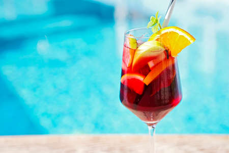 Refreshing classic fruit sangria (punch) by the pool