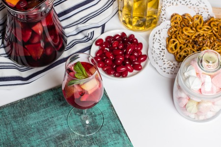 Summer sangria on tablecloth