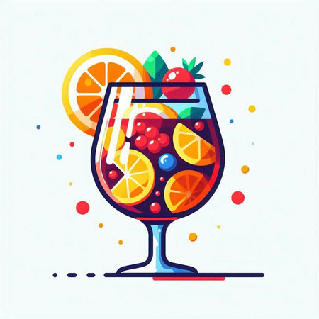 Cocktail with fruit and berries. Colorful vector illustration.