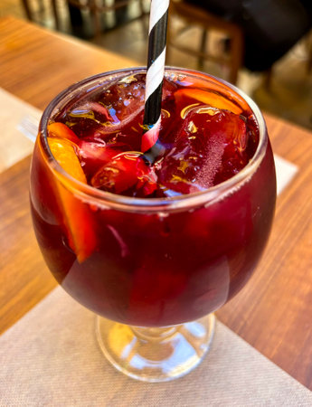 Sangria cocktail, mixed alcoholic drink served in glass