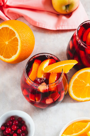 Classic Sangria Cocktail in Wine Glass Refreshing Red Wine and Fruit Beverage on Light Background