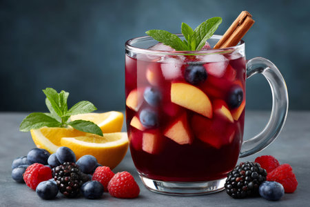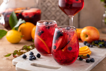 Refreshing summer berry sangria with apples, oranges and blueberry