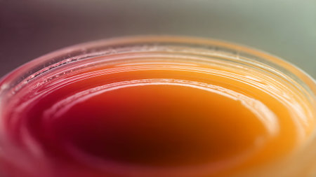 This image depicts a close-up view of petri dishes filled with red bacterial cultures, highlighting the intricate textures and moisture on the surface, ideal for scientific presentations.