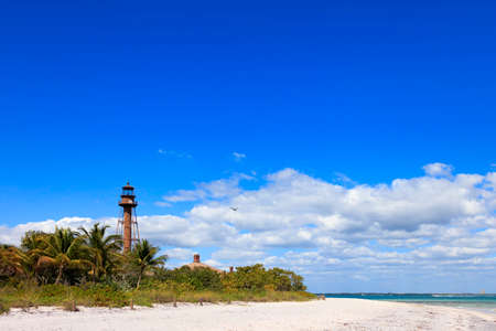 Old lighthouse of Sanibel Island and beach, Florida, USA