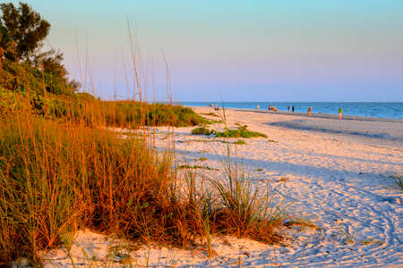 Beach walkers at sunrise on Sanibel Island, Florida