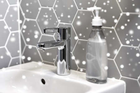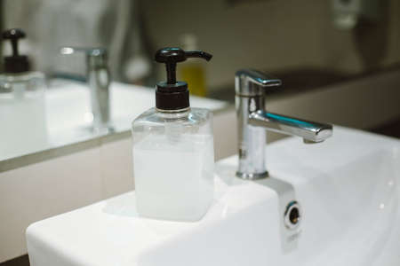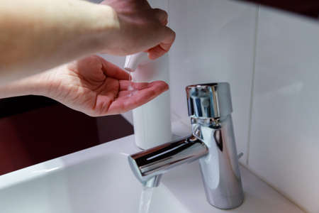 Washing hands with liquid soap and tap water, Antiseptic, personal Hygiene and Healthcare concept