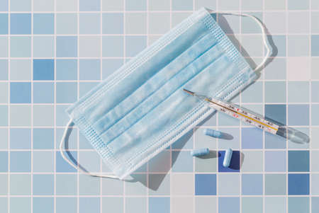 Disposable mask, thermometer and medicines