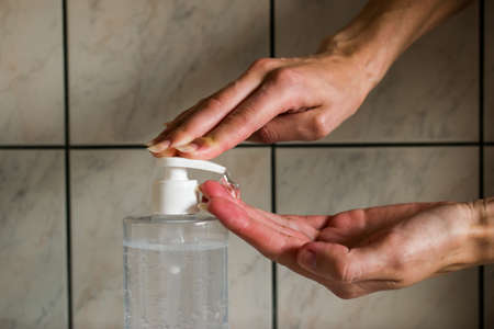 Hand disinfection. Hygienic cleaning liquid , covid 19