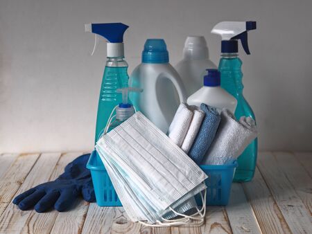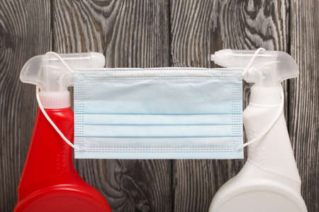 The age of coronavirus 2020g. Medical protective mask with disinfectants.The idea of General cleaning and disinfection during coronavirus quarantine.