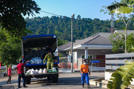 Muadzam Shah, Malaysia - February 17th, 2021 : The distribution of basic food supplies in Desa Alamanda, which are under the Enhanced Movement Control Order (EMCO) to curb the spread of Covid-19.