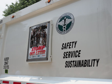 New York, USA - June 2, 2019: Image of the side of a garbage truck in Central Park.