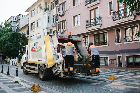 Istanbul, June 14, 2017: Garbage collection on the street in the Asian part of the city in the Kadikoy district.