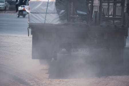 Chiangmai, Thailand - March 25 2020: PM 2.5 from emissions and dust from trucks. On chiangmai highway road.