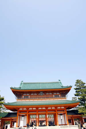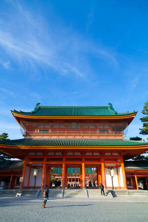 Gate of Buddhist temple and blue sky with clouds