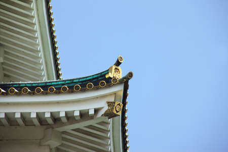Typical japanese buddhist roof ornamented in gold Top of a temple in Narita Shinshoji Temple Tokyo