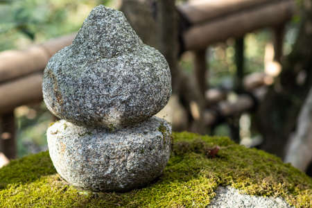 Zen stone in japanese garden.