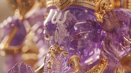 A stunning purple Ganesh idol adorned with intricate gold accents, perfect for spiritual practice or decorative purposes. A blend of art and tradition.