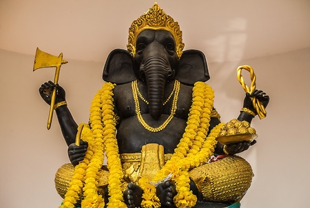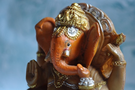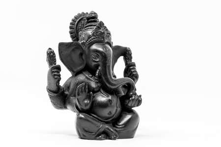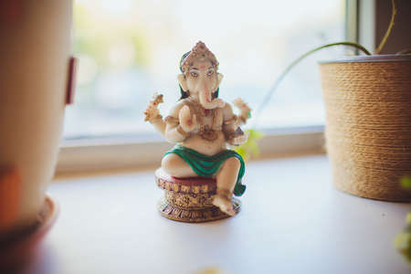 Beautiful figurine of Hindu god of wisdom, knowledge and new beginnings Ganesha against dark background.