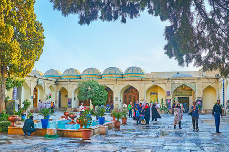 SHIRAZ, IRAN - OCTOBER 12, 2017: Imamzadeh Ali Ibn Hamzeh Holy Shrine is popular city landmark among the tourists and place of pilgrimage for Shia muslims, on October 12 in Shiraz