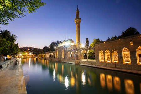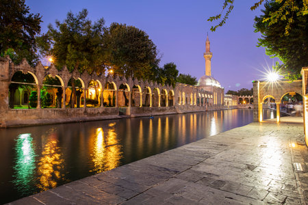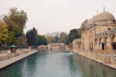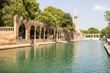 Rizvaniye Camii mosque and Balikligol fish lake in Sanliurfa, Turkey.