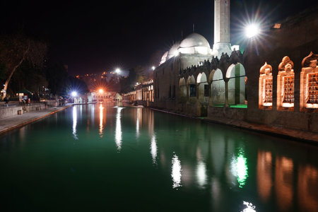 Night long exposure view of Halil-Ur Rahman Lake or Balikli Gol(fish lake) in Sanliurfa,Turkey.