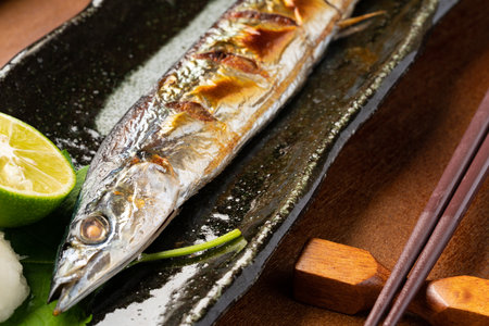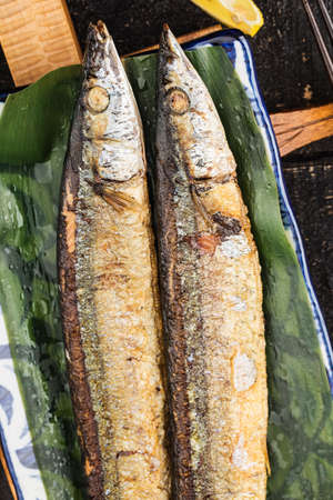 Japanese food, grilled Pacific saury