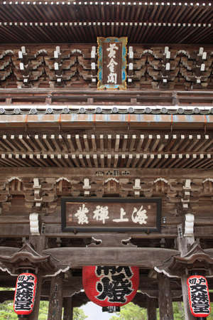 Kencho-ji temple Sanmon Gate. nijumon-style two-storied double roof Hengaku (Gold inscription) Kencho Kokoku Zenji (Kencho Era Nation Zen Monastery). Kamakura, Kanagawa Prefecture, Japan
